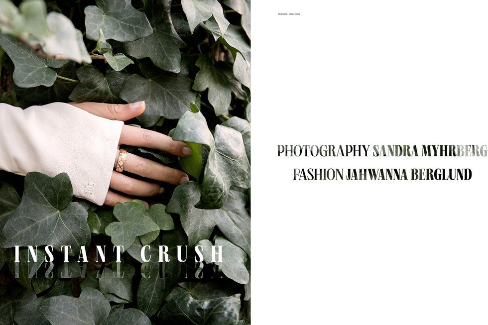 Coco Crush ring in 18K white gold. Styled together with a white leather jacket with polka dots and