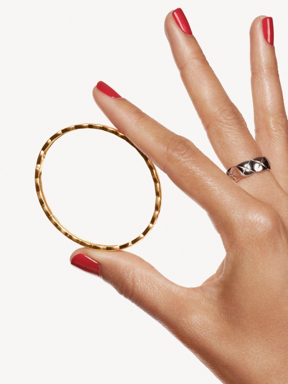 The COCO CRUSH collection embodies these encounters with clean and even incisions that crisscross the curved surface of each piece. These singular creations combine strength and delicacy, simplicity and density, softness and rigor. Discover the new COCO CRUSH creations: the new single earring in white gold and the new mini bracelets in yellow, white or BEIGE GOLD, with or without diamonds. Featuring the exclusive*, rotating and invisible COCO TWIST clasp, the new COCO CRUSH mini bracelets close with a simple turn, endlessly.