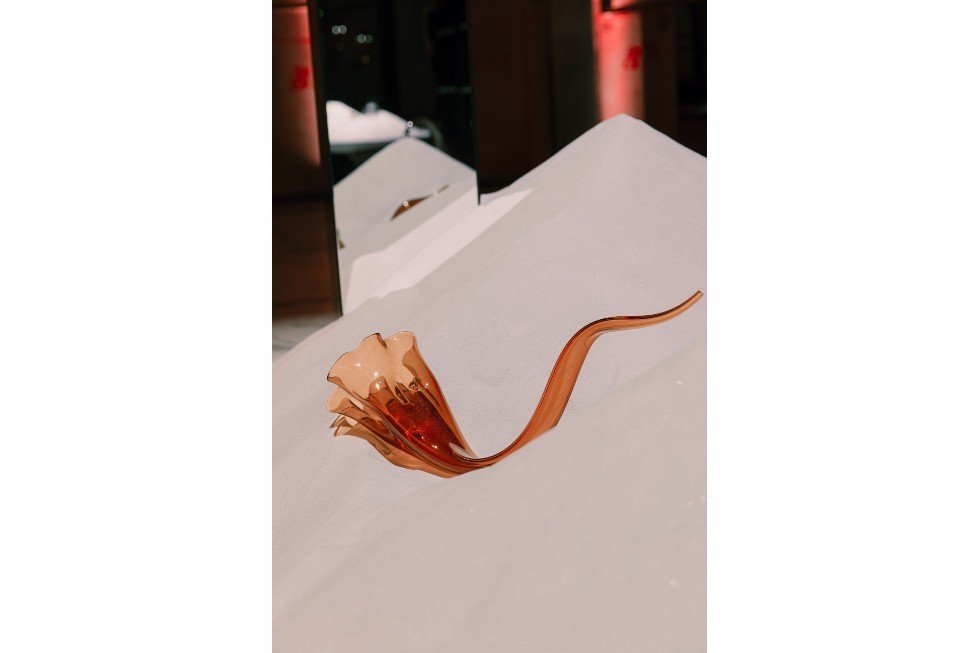 The artistic partnership unites Damsel Elysium’s avant-garde world with Iittala’s centuries-old tradition of artisan glassmaking, resulting in a captivating