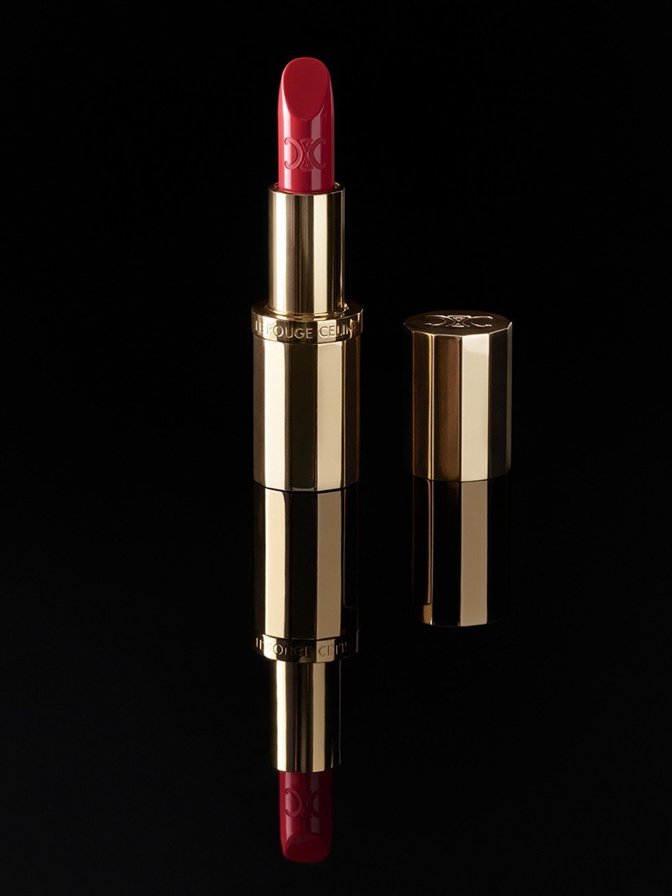 THE VERY CLASSIC AND ESSENTIAL SATIN-FINISH PARISIAN “ROUGE TRIOMPHE”, DRESSED IN A FACETED GOLD SHEATH AND EMBOSSED WITH THE MAISON’S COUTURE MONOGRAM, INAUGURATES THE CELINE BEAUTY RITUAL BY HEDI SLIMANE TO BE LAUNCHED IN FALL 2024.