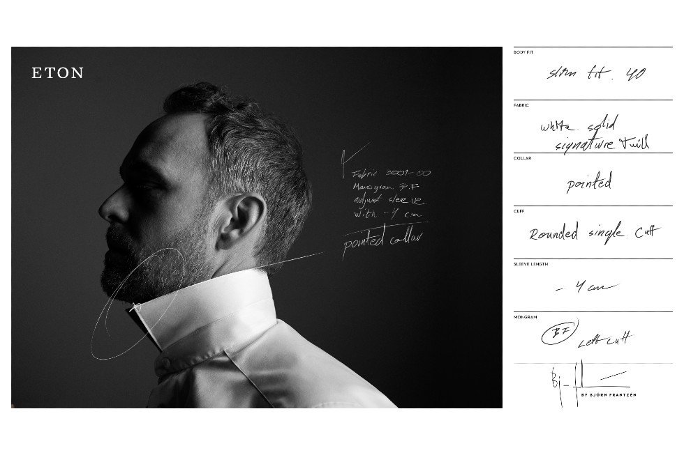 The Swedish shirt manufacturer Eton and the world-famous Michelin chef Björn Frantzén are united in their passion for taste and craftsmanship. In a new collaboration, they together celebrate individuality and personal expression through the custom made shirt. The campaign showcases Björn’s interpretation of the perfect white shirt and the vision behind it.