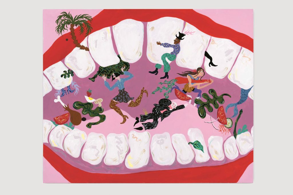 “I seek more freedom through my paintings,” says Swedish artist Malin Molin as we stand in front of Dear eyes, what are you looking at?, one of her works from her current solo show, Ekfraser. Born in Gothenburg in 1989, Molin is exhibiting for the second time in a solo show, Ekfrases (Ekphrases), at Gallery Wetterling in Stockholm. Derived from the Greek ekfras, the title describes a commentary on a visual work of art, with the artist intending to offer a commentary on today’s culture of image.