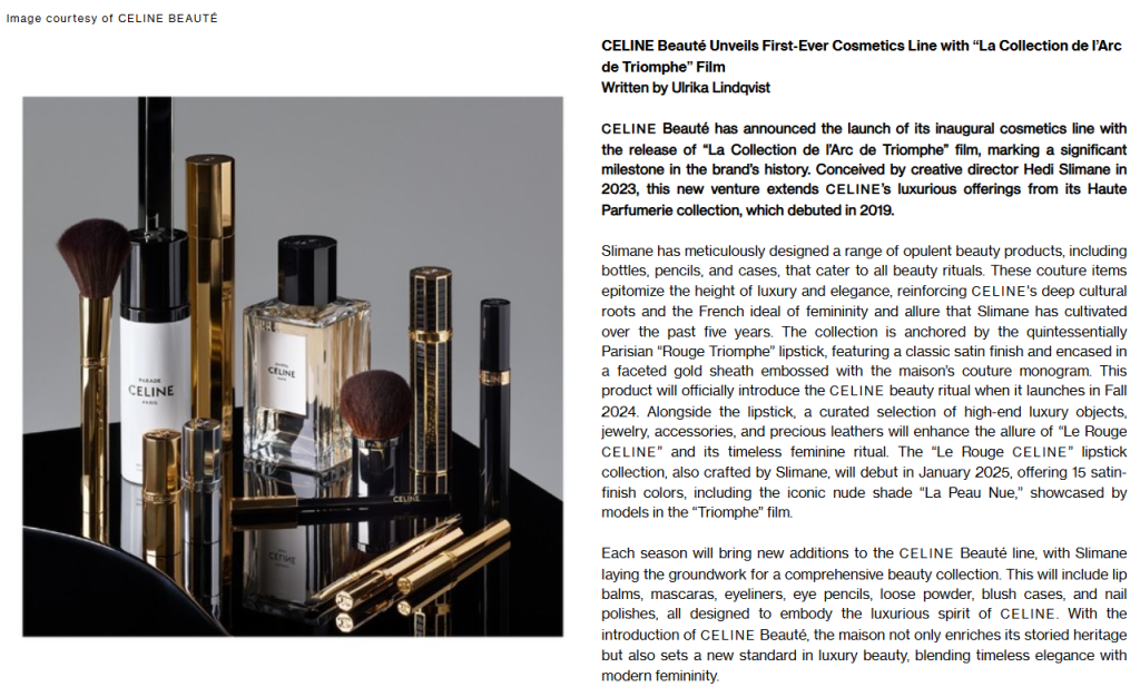 CELINE Beauté Unveils First-Ever Cosmetics Line with “La Collection de l’Arc de Triomphe” FilmBy Odalisque / August 5, 2024 CELINE Beauté Unveils First-Ever Cosmetics Line with “La Collection de l’Arc de Triomphe” Film Watch the film at celine.com ← Backstage at Chanel Beauty Autumn-Winter 2024/25 Ready to WearBHBD’s Collagen Supplements →