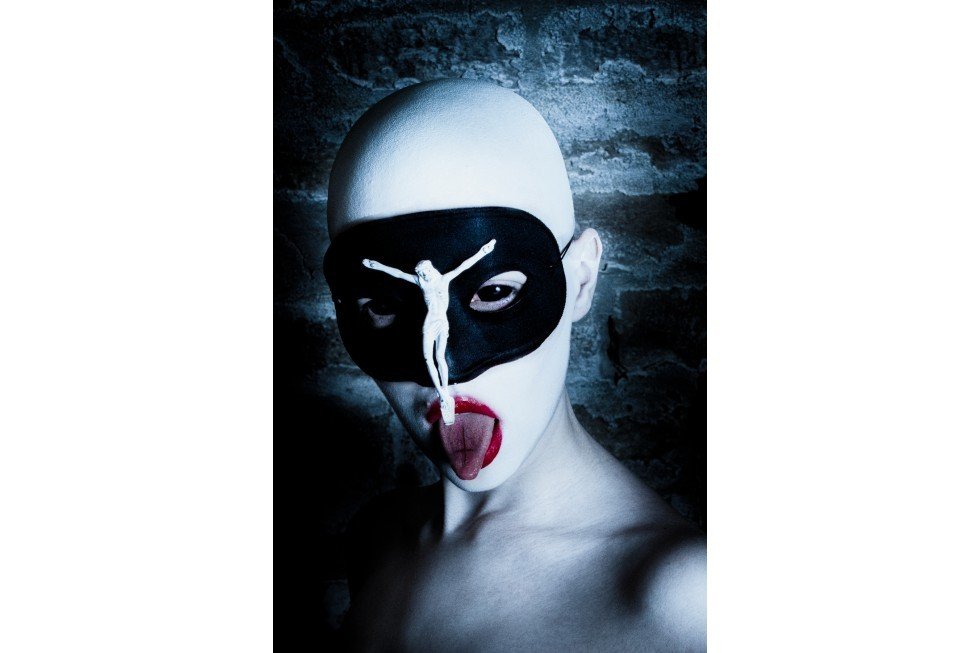 And because of this, each mask is in of itself one-of-a-kind. For instance, one didn’t get used in the show, because Jesus’ feet hung too low on the model’s face. So, we had to source figures which were the right size, and then work out a way of sticking them onto the masks. There would have been about a dozen masks made I think, but after the show, a couple of models left with some because they were going to a party, and I know one got dropped and smashed.