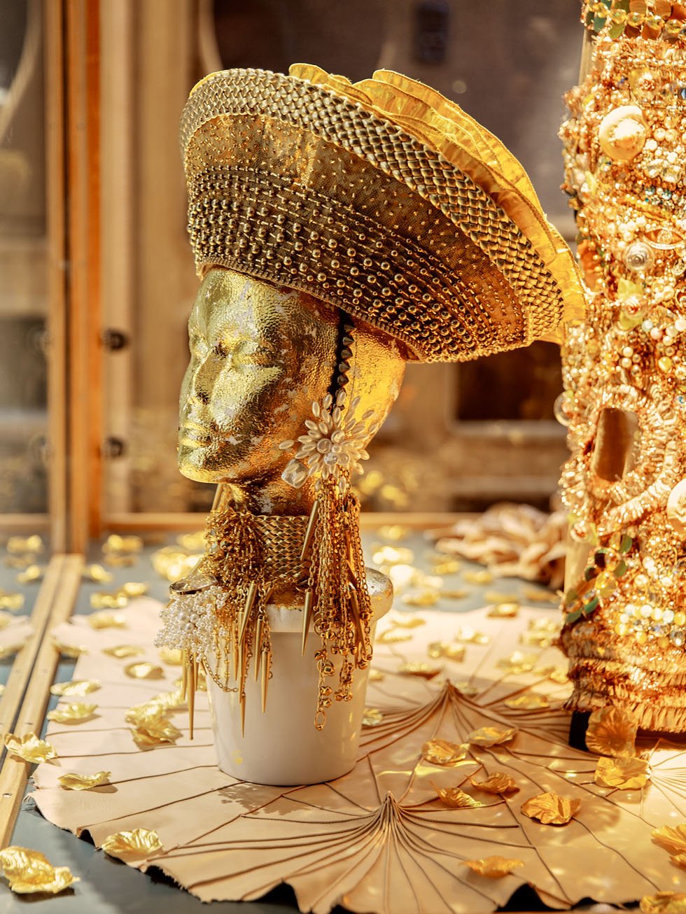 Brands like Dior, Aesop, Selfridges, and Anthropologie often turn to production remnants, scraps, and repurposed materials to craft unique, sustainable displays that not only showcase creativity but also communicate their sustainabile values to consumers. In Sweden, Nordiska Kompaniet (NK) is known for its innovative use of upcycling and recycling practices in its iconic Christmas window displays, offering a local example of how sustainable values can not only coexist with, but also stimulate creativity and artistic vision. Through upcycling and his unique immersive approach to dress, Pavlo invites the public to engage not only with the materials and spaces but also with the deeper meanings behind them. In a world driven by consumption, this installation reminds us of the power of transformation— unlocking potential in what we already own and creating value from what others overlook. It is about the stories we tell and the future we envision.
