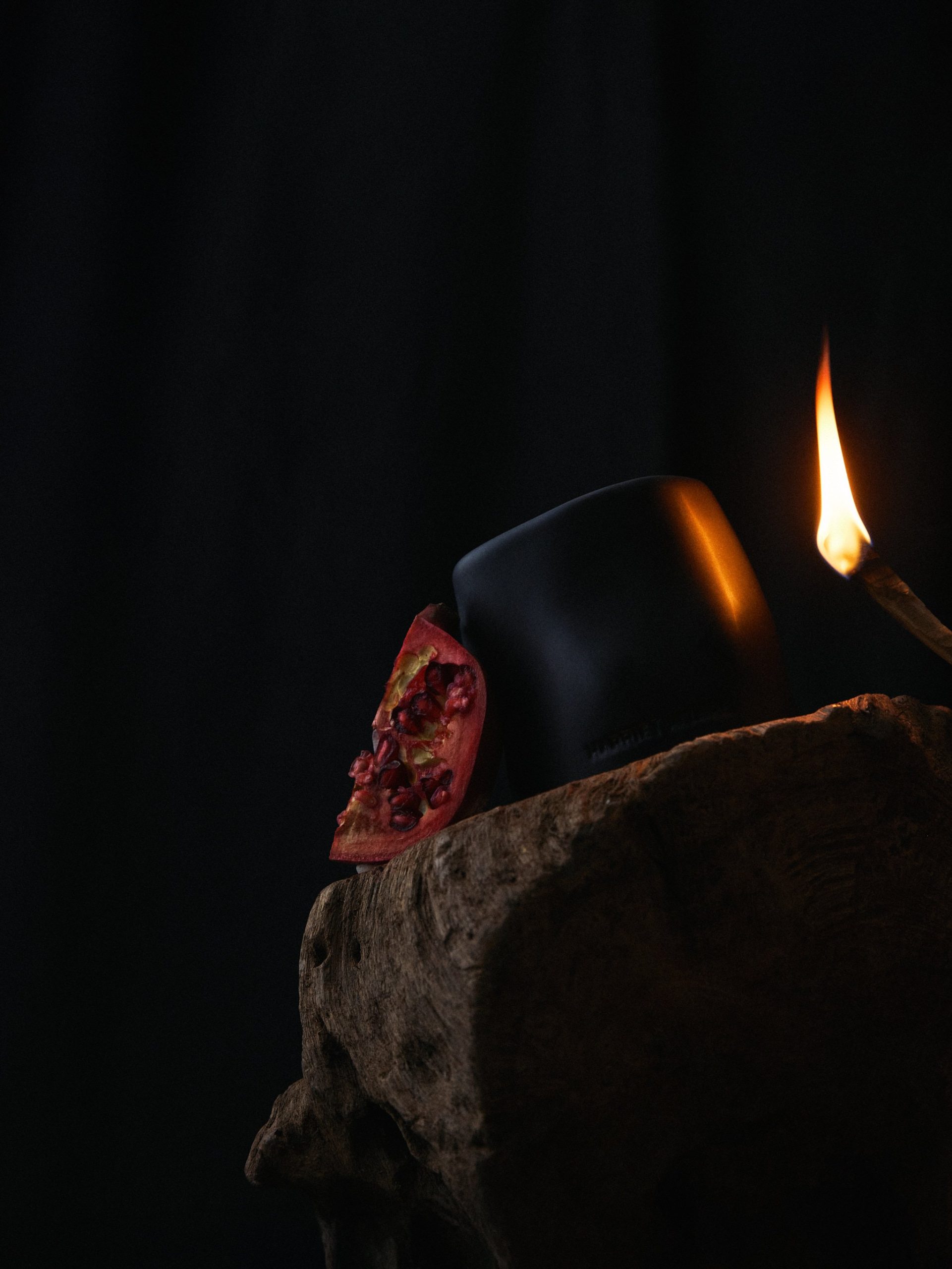 Dimma by Maria Nilsdotter Dimma combines the warmth of almond blossoms with rich roasted amber. Its base notes feature sweet rum and vanilla, balanced by a smoky bonfire essence. Housed in dark green glass, this candle offers a cozy, festive atmosphere. Crafted with care in Stockholm, Sweden, it's perfect for winter moments. Top: Almond blossom Heart: Roasted hazelnut, amber, carnation Base: Cade, vetiver, sawdust, rum, vanilla absolute