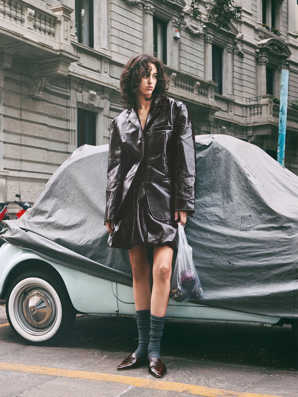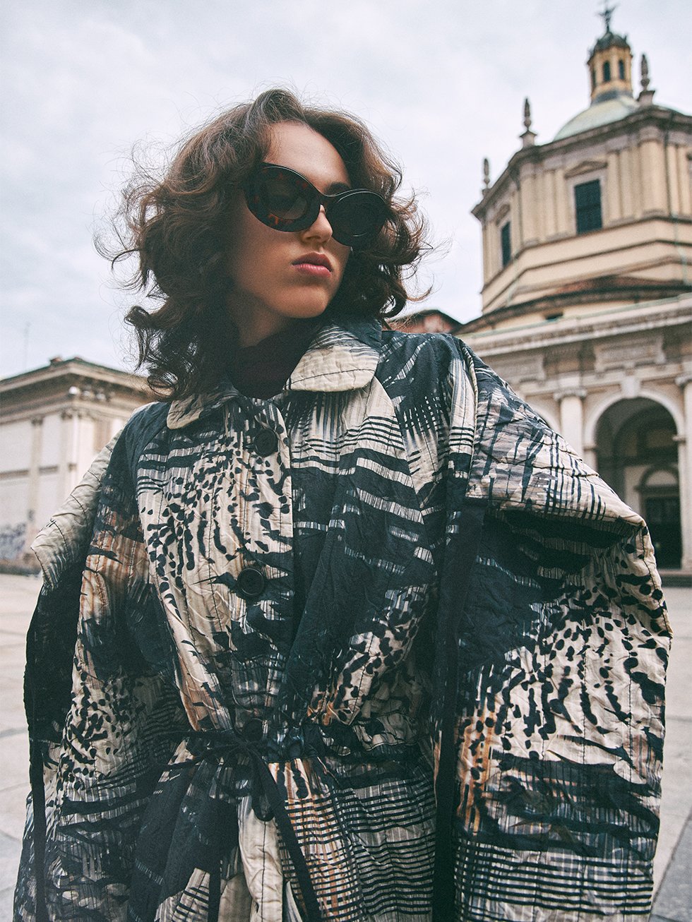 coat and glasses Henrik Vibskov dress Remain shoes Apair