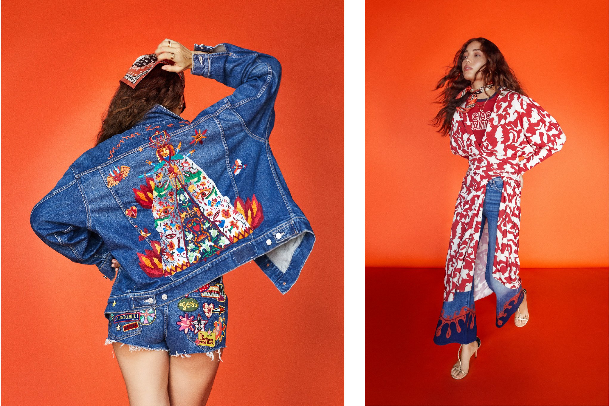Every detail in the capsule embodies the eclectic spirit shared by both brands, including flowy dresses, skirts, denim and shirts adorned with La DoubleJ’s whimsical prints, vintage-inspired patches on sweatshirts and MOTHER’s iconic denim delicately embroidered with intricate artwork. At the heart of the collection is a striking jean jacket embroidered with the same “Mother Mary” goddess design that can be found in La DoubleJ’s sacred “grotta” in their Milan store.