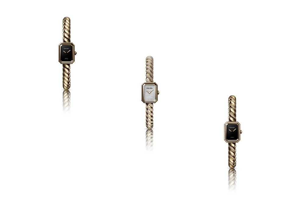 The PREMIÈRE GALON bracelet is a bangle made of a twisted braid that offers a new way of wearing. This 18-carat yellow gold bracelet highlights the purity of the black lacquered dial freed of indicators. And because there are as many braids as there are versions of the CHANEL suit, the PREMIÈRE GALON is also available in two versions adorned with diamonds. Retaining its resolutely couture spirit, this precious interpretation of the PREMIÈRE watch enters the world of jewelry.