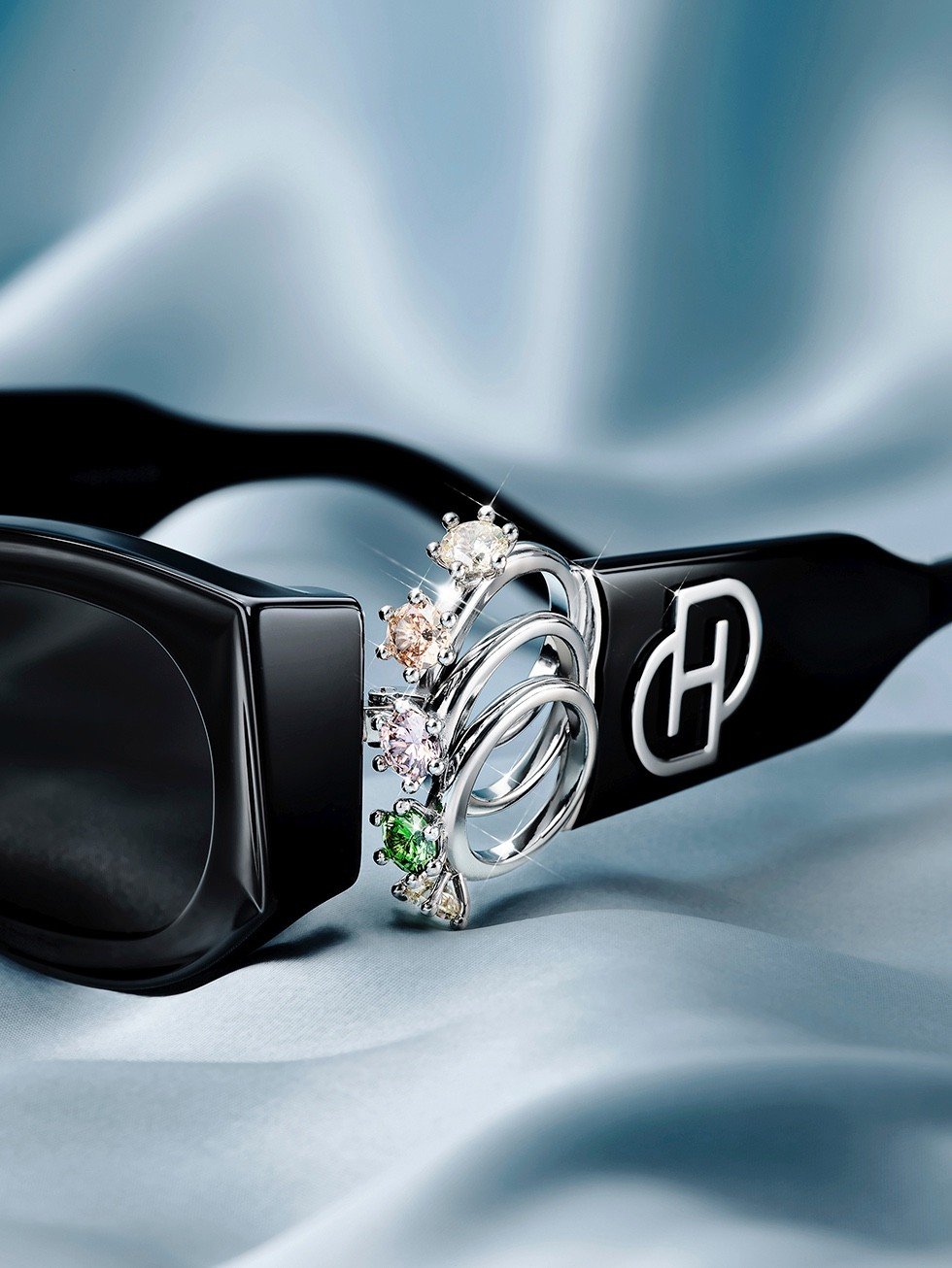 Gentle Monster x D’heygere presents an original eyewear collaboration, uniting the brands’ creative identities by incorporating the jewelry of French fashion accessory brand D’heygere into the original eyewear designs of Gentle Monster. In a creative attempt to redefine jewelry and fashion eyewear, the collection features eyewear with temples adorned with rings and earrings, reestablishing the frame itself to be a piece of jewelry. The collaboration package, which elegantly reinterprets the two brands’ formal identities, is reminiscent of jewelry boxes.