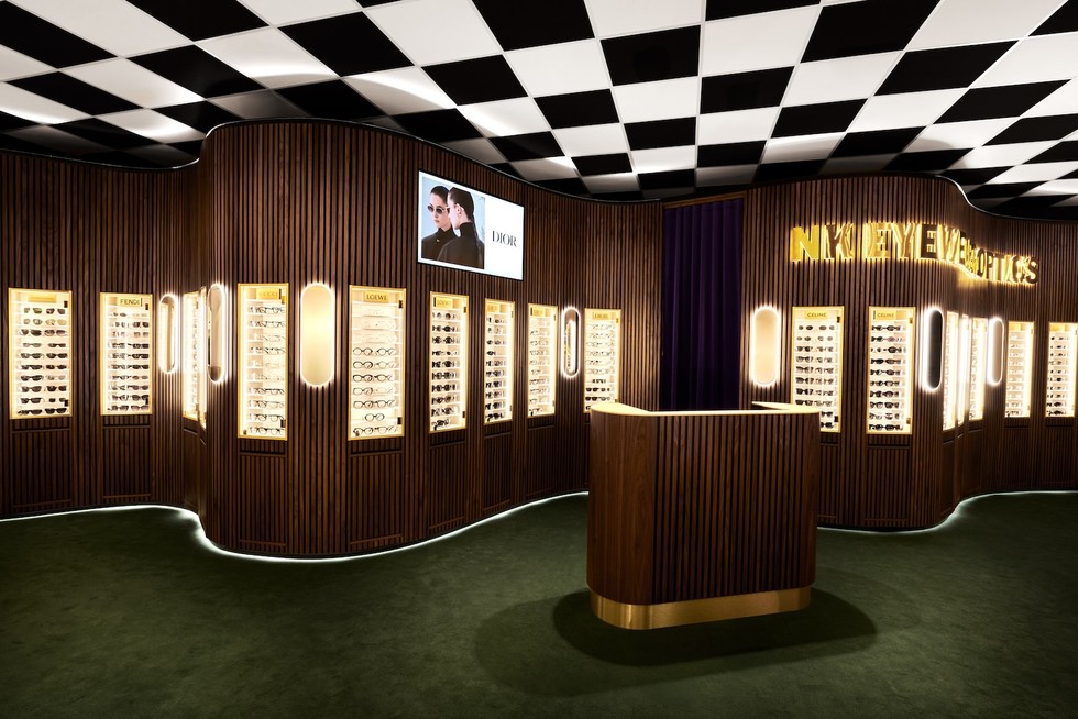 This isn’t just another eyewear store. Spanning 47 meters on NK’s entrance level, the space feels more like a high-end gallery than a retail outlet. Offering over 1,400 frames from 35 exclusive brands, rows of Tom Ford and Dior frames are displayed like art pieces, bathed in carefully curated lighting.