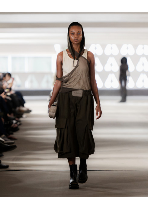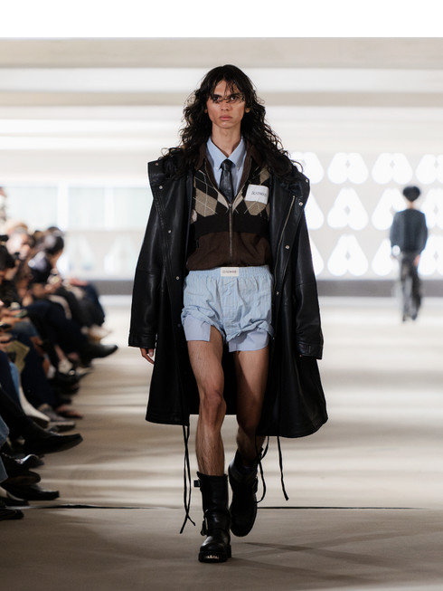 Felix von Bahder: I started with a question: What does it feel like to land in a city that’s pulsing faster than your own heartbeat? Or to face a technology so alien that it makes you feel completely free and completely lost at the same time? From there we put together a mood-board of late-night escalators, neon-tinged rain, cords and cables forming an electric mess. We built the show like a mixtape: eclectic, raw and personal. Actually, the whole process for this collection was anchored in music. Guess it always is for us. Lately a lot of goth, new romance and industrial stuff from the 80’s and early 90’s.