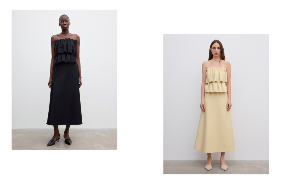 House of Dagmar unveiled the artistic story behind its sculpted silhouettes, inspired by Swedish artist Matthias van Arkel’s dynamic three-dimensional works. Translating his exploration of form and materiality into fashion, the brand crafted structured yet wearable pieces from innovative scuba fabric, each designed for timeless appeal.