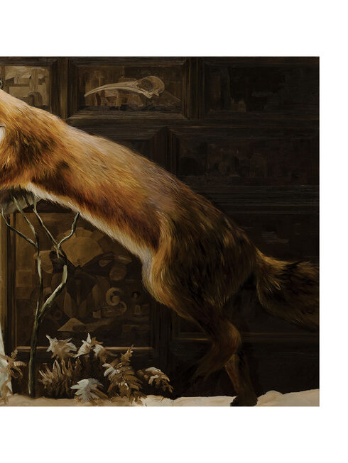 Drawing from a rich tapestry of influences, ranging from Old Master paintings and medieval symbolism to Scandinavian folklore and alchemical traditions, his pieces, whether they depict solitary figures suspended in time or taxidermied animals frozen mid-hunt, are imbued with quiet tension. His paintings and sculptures invite viewers into liminal spaces, where the boundaries between life and death, past and present, and the tangible and the imagined blur.