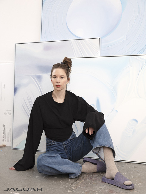 Camner’s canvases are defined by contradictions – control and abandonment, the synthetic and organic, the weight of light and the lightness of touch – a duality she will explore in her 2025 exhibition, ‘Weight of Light.’