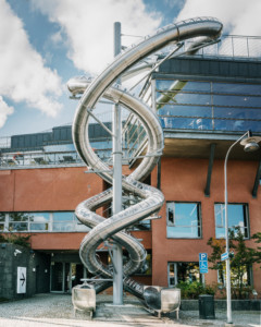A new large-scale art installation transforming the facade of Moderna Museet is more than a slide. It is a physical exercise in surrendering control. “Stockholm Slides,” a pair of spiral slides by internationally renowned artist Carsten Höller, opened to the public last week.