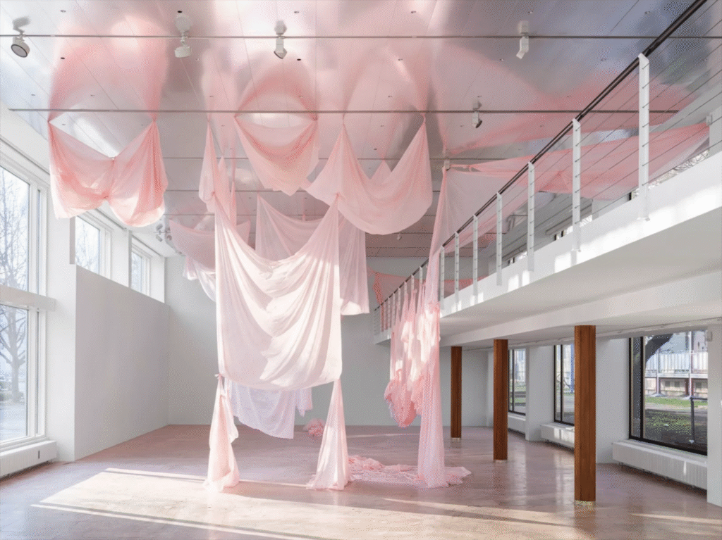 NM: Pastel colours play a central role in your installations. How do you think their softness shapes the atmosphere of this exhibition?