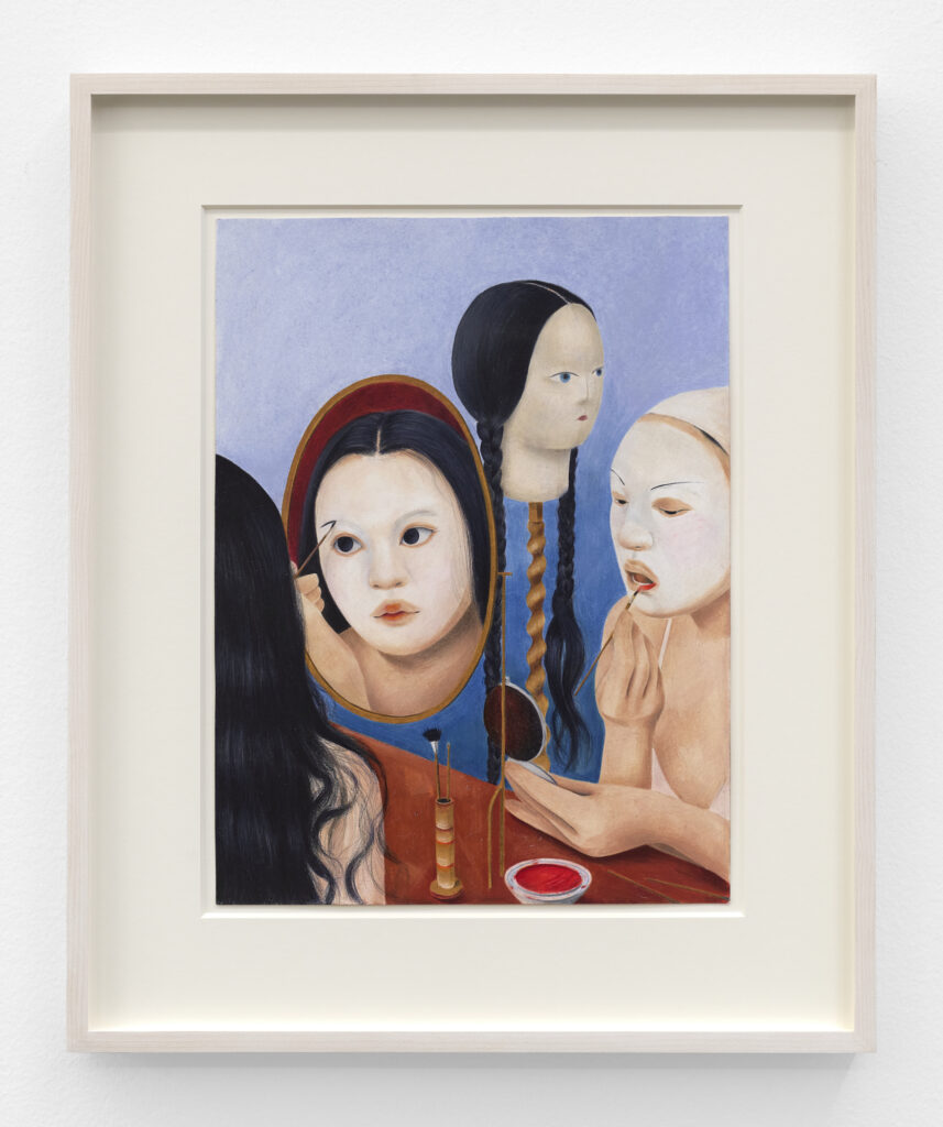 The Mask Experience, 2024, 40x30cm, colored pencil on paper, courtesy of the artist and Scroll, New York.