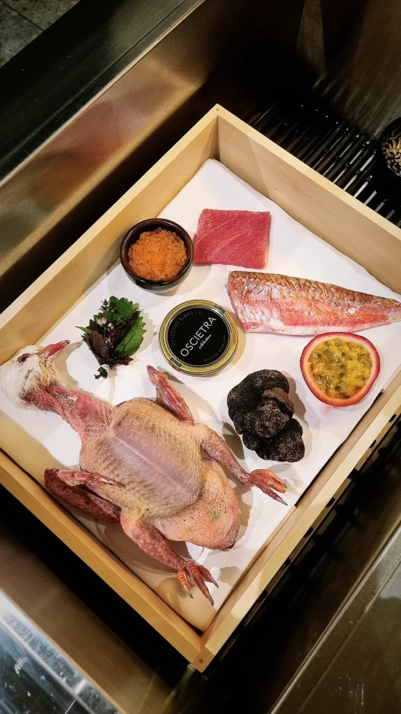 And yet, it never feels forced. Every course is timed with cinematic pacing, each ingredient introduced like a new character. The sommeliers narrate as they pour natural wines, rare bottles, unexpected pairings and guide you through the story without ever overshadowing it.