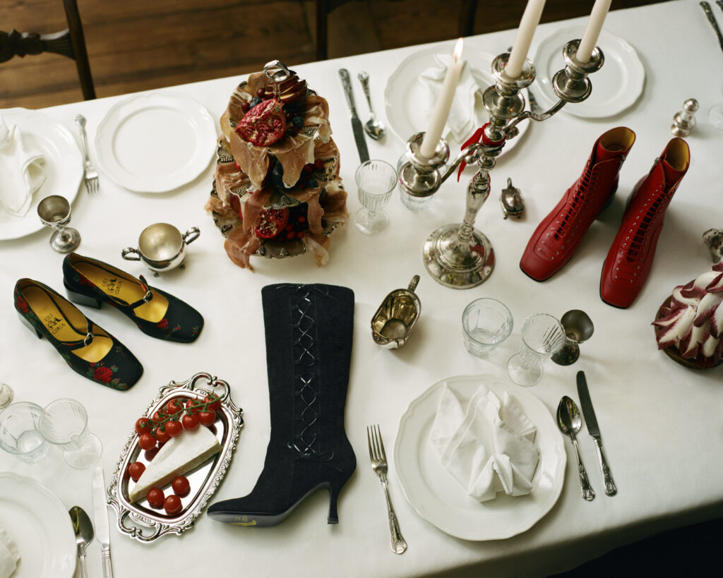 Photographed in London by Benedict Brink, and paired with a film in three acts by Joni Lettmann, the story begins quietly. The table is set, the scene immaculate, each detail trembling with anticipation. And then, just as every holiday dinner eventually does, the moment breaks open. The main character steps into the spotlight, and the performance begins.