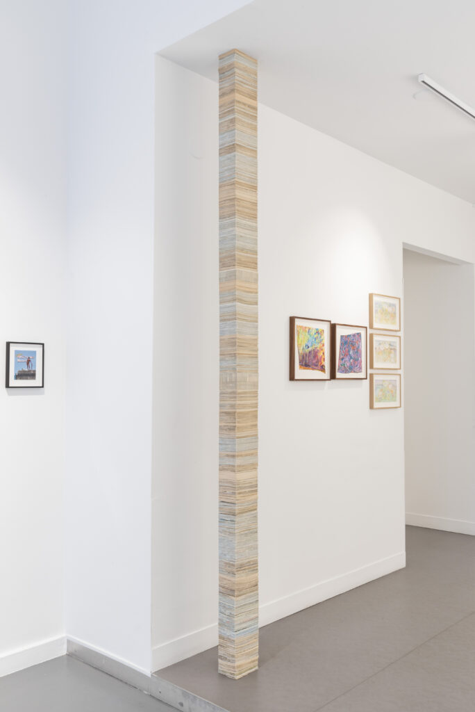 Susanna Marcus Jablonski: I approached the postcard the way I usually approach a material: thinking through its historical, political and material value, and then imagining how I could either deepen or shift some of those pre-established ideas by working with it as a sculptural material. In this case, it led me to work with them in a very concrete way, creating an architectural addition to the gallery. The sculptural ‘gesture’, I suppose, is that transformation: balancing these thousands of objects in one vertical mass.