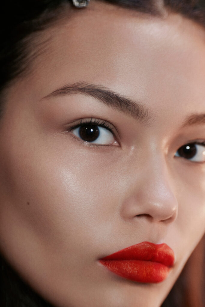eyes Brush the brows with the DUAL-ENDED BROW BRUSH N° 207, then fill in with the STYLO SOURCILS HAUTE PRECISION.