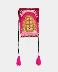 AH: I think they can symbolise an idea. For example, one piece in the Stockholm show features a lace fabric with flowers already on it. I add painting and embroidery to put a spotlight on, and to make a combination with what I want to symbolise. Found objects are also a way to make more funny combinations. I think this is more the fun and spontaneous aspect of my practice.