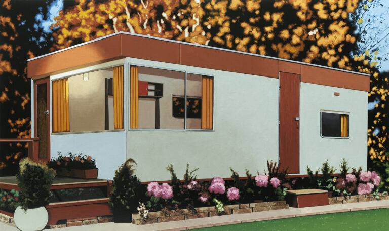 Martin Wickström: It’s normally when I do a show, I have a room space, obviously, and a deadline. But when I start working, I don’t know anything about the title or anything. I start somewhere, and it kind of develops during, so it’s kind of scary. Will it end well? I don’t know. But in this case, the theme is easier to read than it used to be. When I started, I had this painting with a big truck house. I collect a lot of pictures and images from several sources. The sofa – that one I also had for many years, kind of lying around. But this time, I started without knowing anything about Oslo, with a sofa.