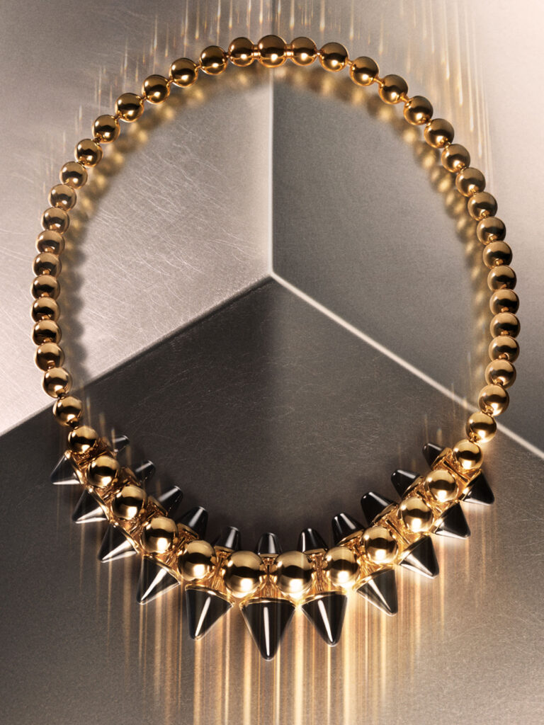 In its most expressive form, Clash de Cartier XL introduces upgraded onyx studs across fully flexible yellow‑gold bracelets, necklaces and a striking three‑finger ring. Transformability continues through multi‑wear earrings in rose or white gold, featuring two supple lines that shift in appearance depending on how they are worn.