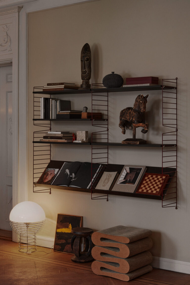 The exhibition, with a conceptual design by artist and architect Michel Bussien, explores the creative dialogue between heritage and modern innovation. String Furniture is debuting its Pira system expansion and new “Dark Oak” finishes, while Gemla highlights artisanal hand-bent wood pieces like the GOURMET Soft Back and the VIDE bag hanger by Javier Masa. Grythyttan Stålmöbler brings a focus to the outdoors with the Bovik series, which pairs their signature 1930s steel construction with teak.