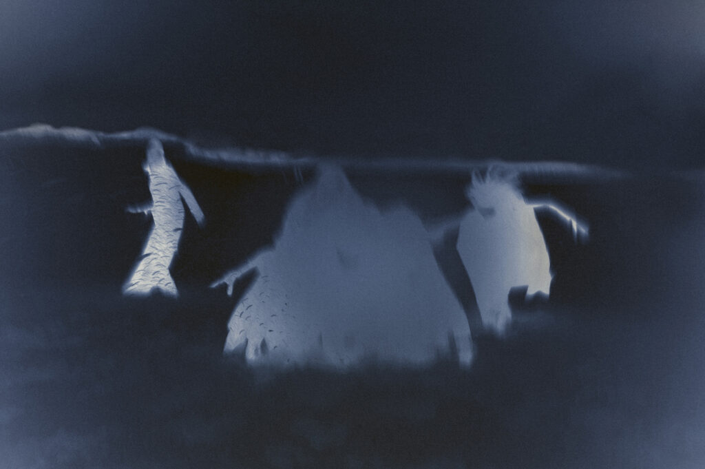 Light plays a crucial role in shaping the exhibition’s dreamlike atmosphere. Montmare paid careful attention to the lighting design, changing all of the spots to achieve the desired effect. The spaces between the images are as important as the images themselves, because what is left unseen becomes part of the experience. Carefully chosen indigos and purples create what Montmare describes as a “nocturnal landscape.”
