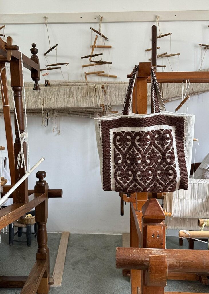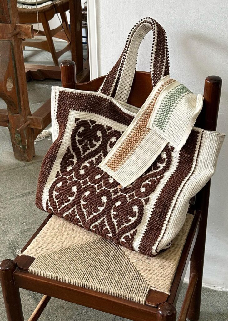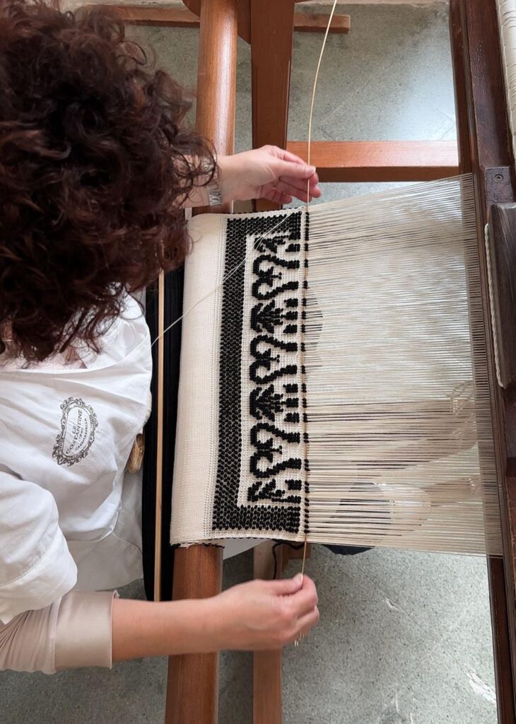 Costantine’s history reaches back to 1901, when the Casamassella School for weaving and embroidery was founded to create economic opportunities for women in Southern Italy. Today, the atelier continues that legacy in its Salento workshop, where ancestral techniques are preserved and translated into contemporary forms.