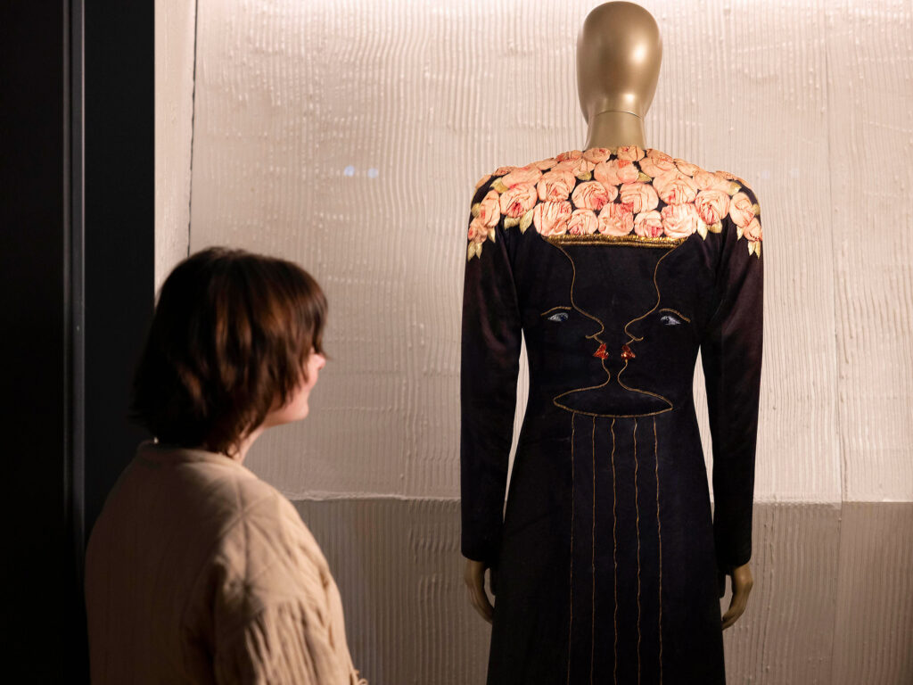 From the power suits of the 1940s to seminal pieces like the floral embroidered coat co-created with Jean Cocteau, walking through the space crystallises the role Schiaparelli played in shaping fashion as we know it today. “Above all, in this exhibition, we encounter Elsa Schiaparelli as a companion of futurism and a protagonist of surrealism,” said Sir Tristram Hunt, director of the V&A, at a press preview. “She revealed how fashion became a theatre for the unconscious, irrational, the marvellous.”