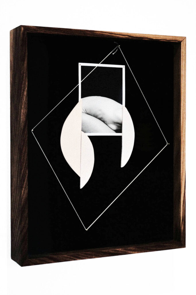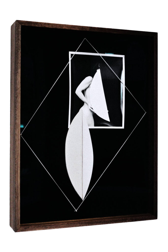SH: Very rarely. If I have a question about something, I’ll leave the studio and come back the next day, and usually right away I can tell: this works, this doesn’t, and here’s why. Fresh eyes. I’m not afraid to sit with something until I’m sure. Or to play with it again, because that’s actually one of the beauties of this work. If something isn’t quite right, you can just move things around, change the shapes, shift the photograph or adjust the string placement. Often, I can get it to sing just by making a few small changes. It’s a lot about intuition