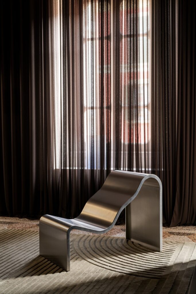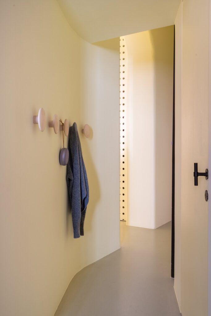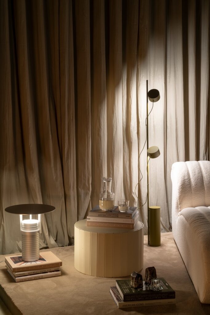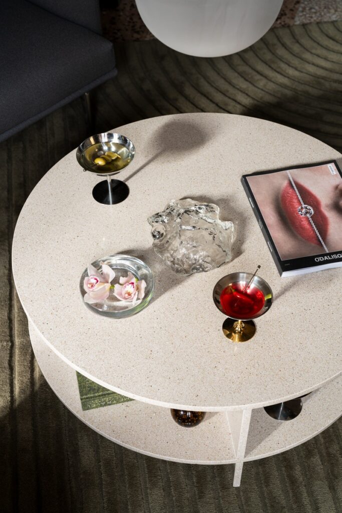 Conceived as a modular series, Coltre can be configured into expansive sofa landscapes or stand alone as individual lounge elements, each piece maintaining its own sculptural presence. This flexibility mirrors the apartment’s overarching narrative—one that prioritizes adaptability, informality, and the evolving nature of the home. The tactile qualities of the sofa further reinforce the sensory dimension of the space, inviting interaction and prolonged use.