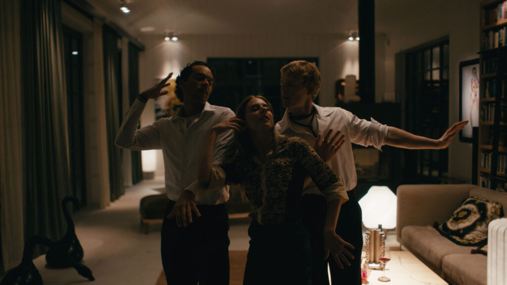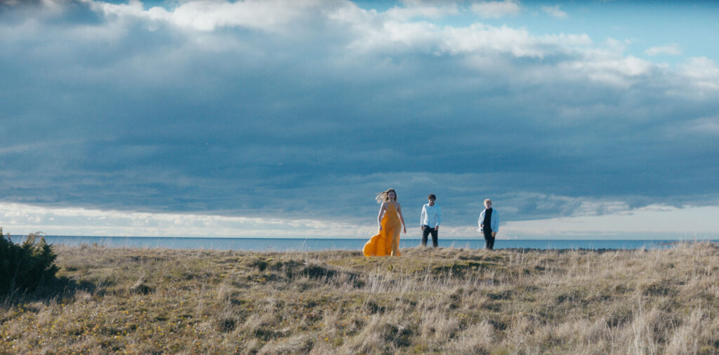 Much of this intensity came from the way Thelin works. Her direction is rooted in instinct, attention and a kind of quiet precision. “These three actors are in almost every scene, and they all work very differently,” she said, describing the balance she had to maintain. What she aimed for was a mix of “focus, but also playfulness.” Many of the film’s most charged moments, the long gazes and the tension between characters, weren’t planned. “A lot of the gazing in the film is real,” says Sehn. “We were processing things she said to us in the moment itself.”